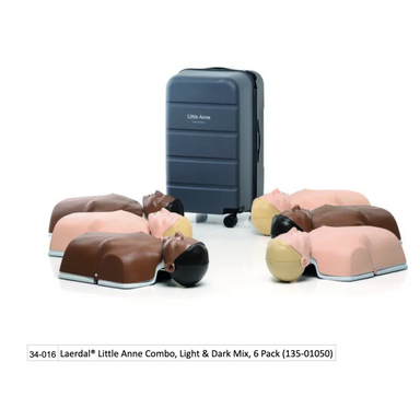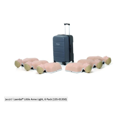 Set of 6 Little Anne manikins all stacked together in a convenient wheeled suitcase. Manikins are bluetooth enabled for connection to the QCPR App ...